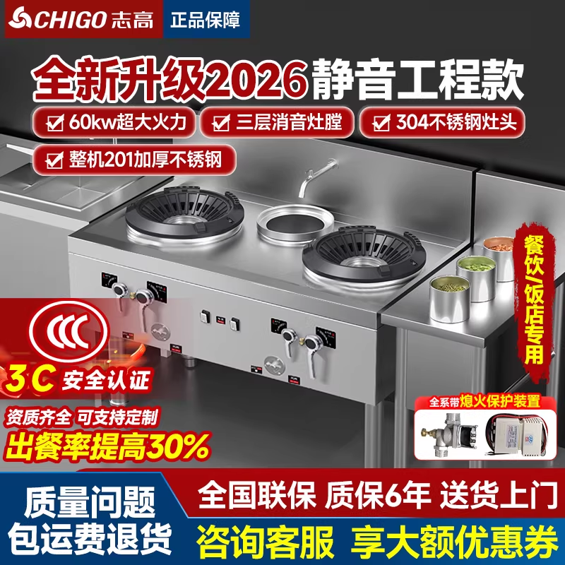 志高静音猛火灶商用新款饭店专用天然气煤气液化气单双灶台节能灶