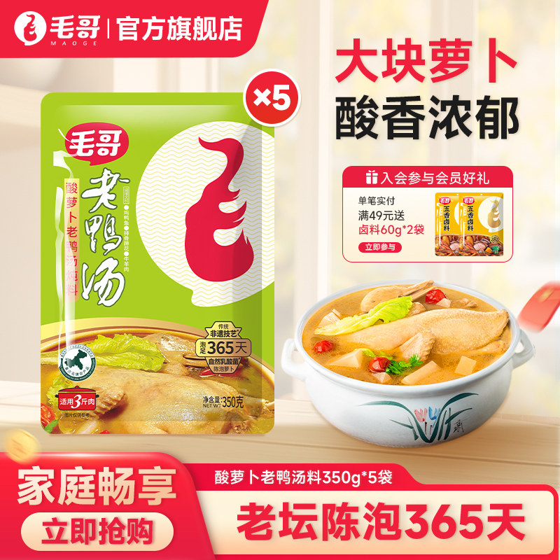 毛哥酸萝卜老鸭汤炖汤调料350g*5袋清汤火锅底料重庆特产煲汤佐料