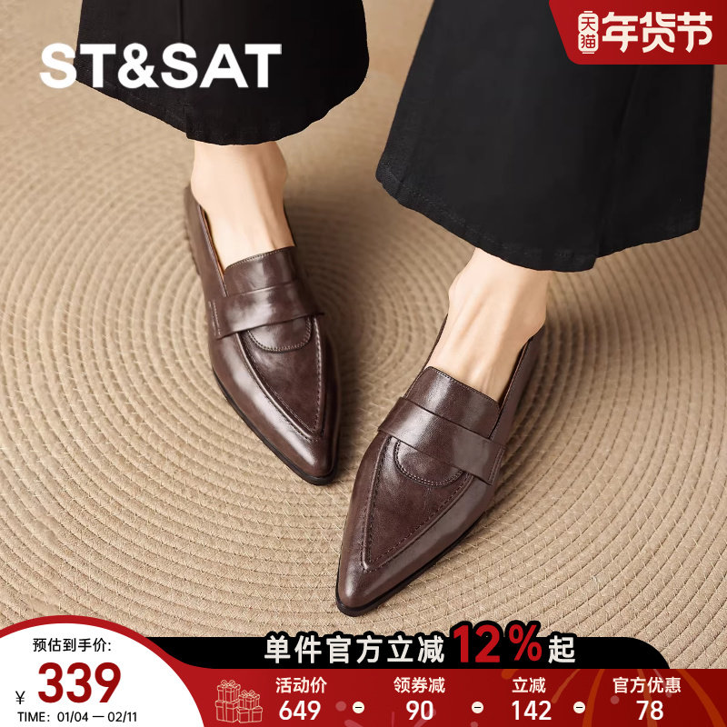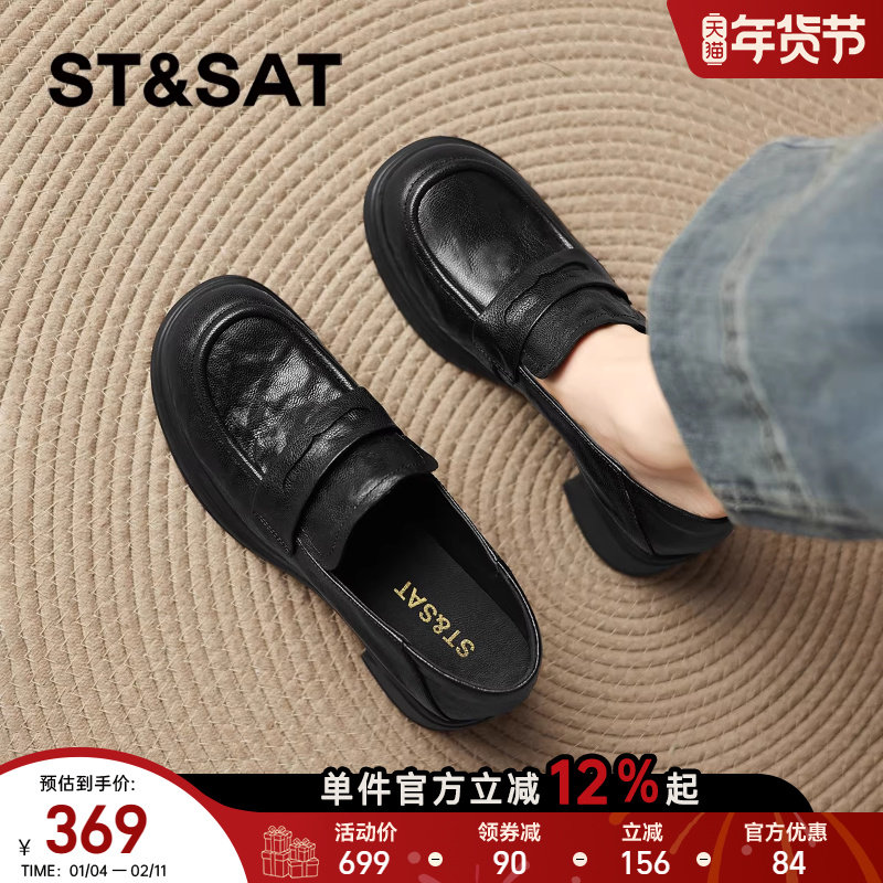 思加图2026新款秋叶伯爵英伦风乐福鞋增高一脚蹬小皮鞋女EGB60AA6