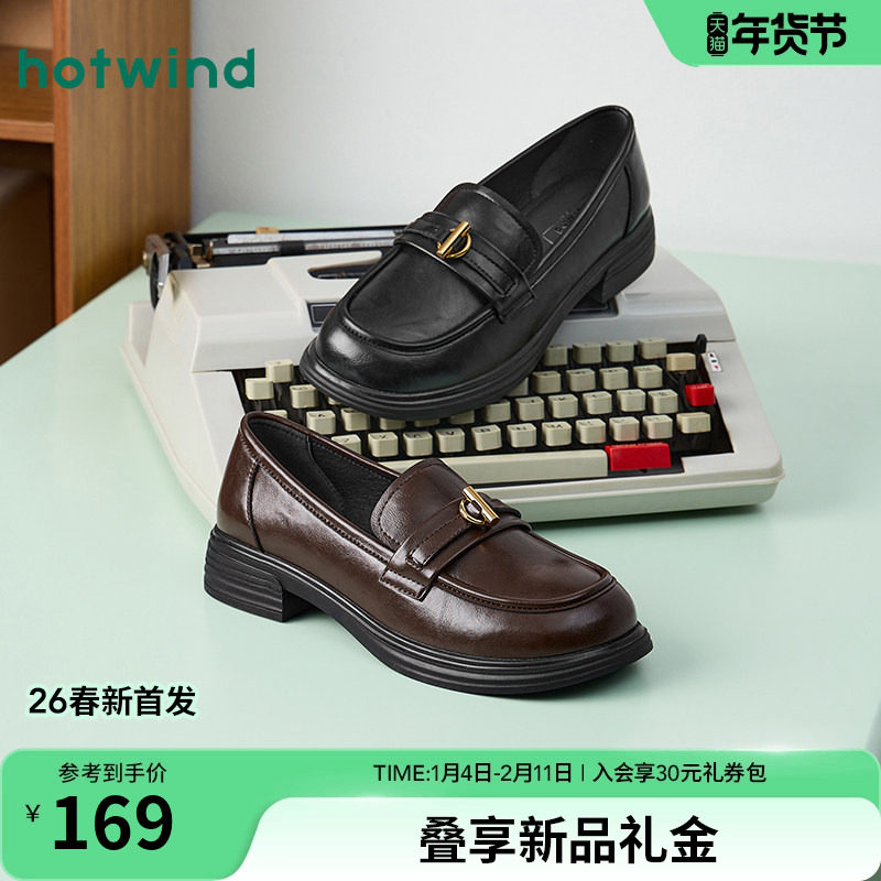 热风黑色小皮鞋女款2026年春季新款英伦风通勤乐福鞋百搭女鞋单鞋