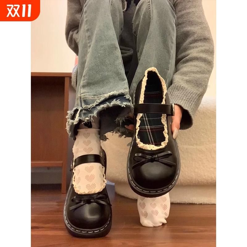 春季圆头Lolita小皮鞋女2025新款英伦风日系平底玛丽珍单鞋中跟