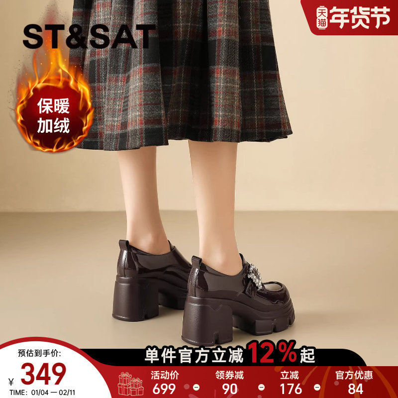 星期六加绒厚底乐福鞋女2025冬季新款水钻小个子气质小皮鞋女单鞋