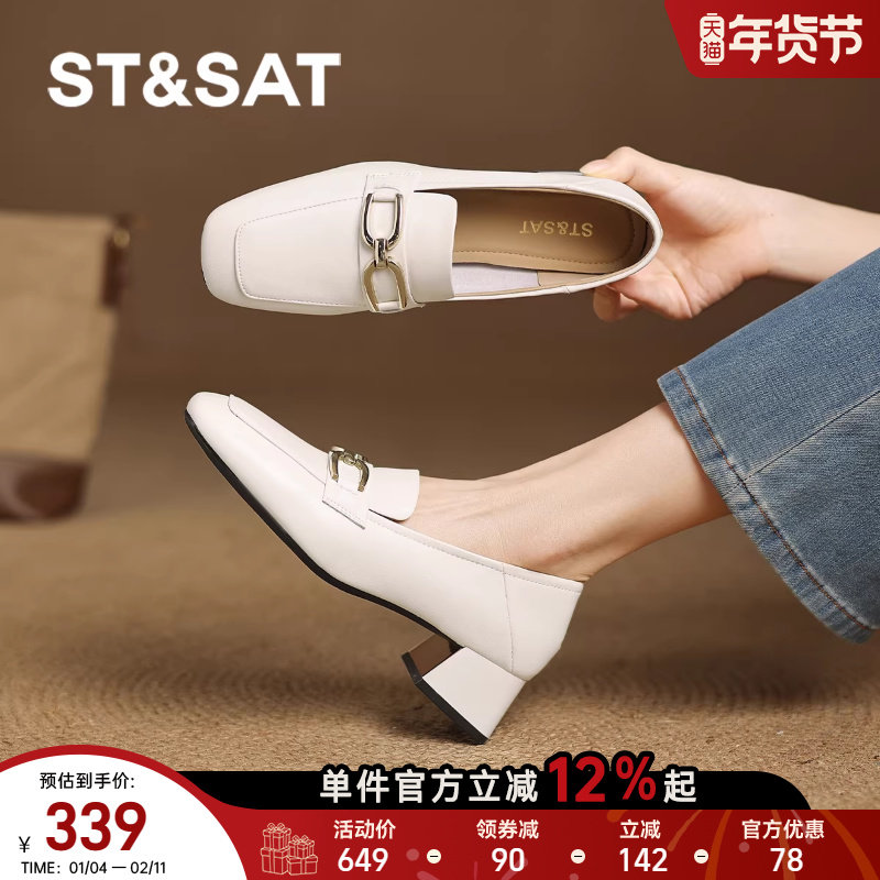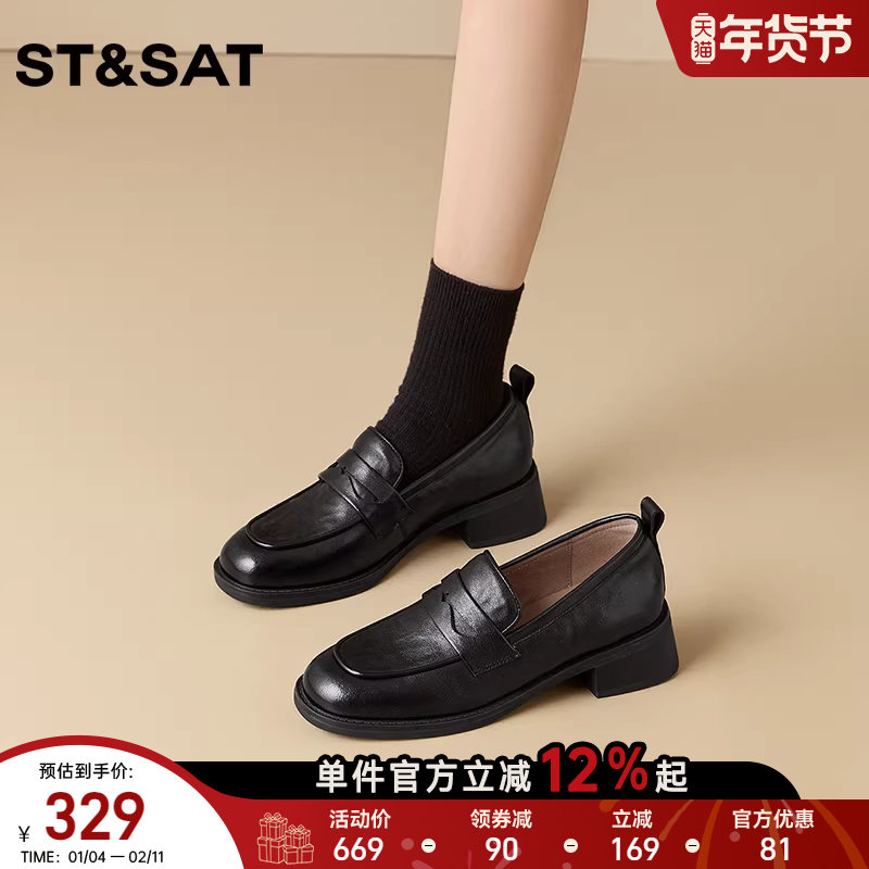 星期六真皮小皮鞋女粗跟复古女士单鞋2025秋季新款百搭女鞋乐福鞋