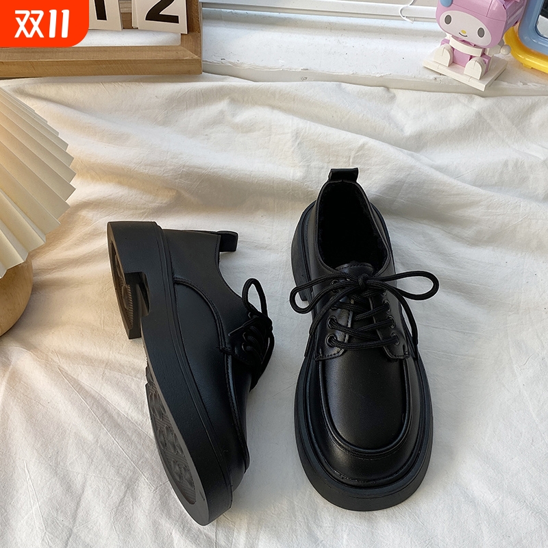 厚底小皮鞋女2024春秋夏季新款粗跟复古英伦风系带单鞋子日系甜酷