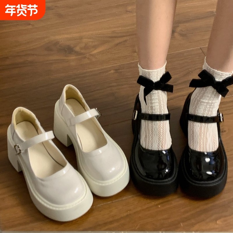 甜酷粗跟高跟小皮鞋女2025春夏季新款厚底增高法式复古玛丽珍单鞋