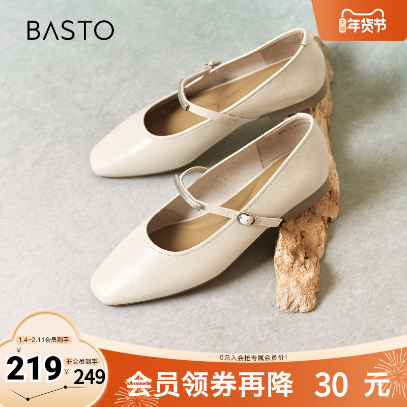百思图月光鞋春夏商场新款法式玛丽珍小皮鞋女平底单鞋M1015CQ4