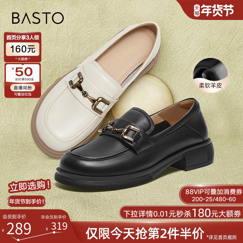 百思图春季商场新款超软羊皮乐福鞋小皮鞋女深口单鞋CB103AA4