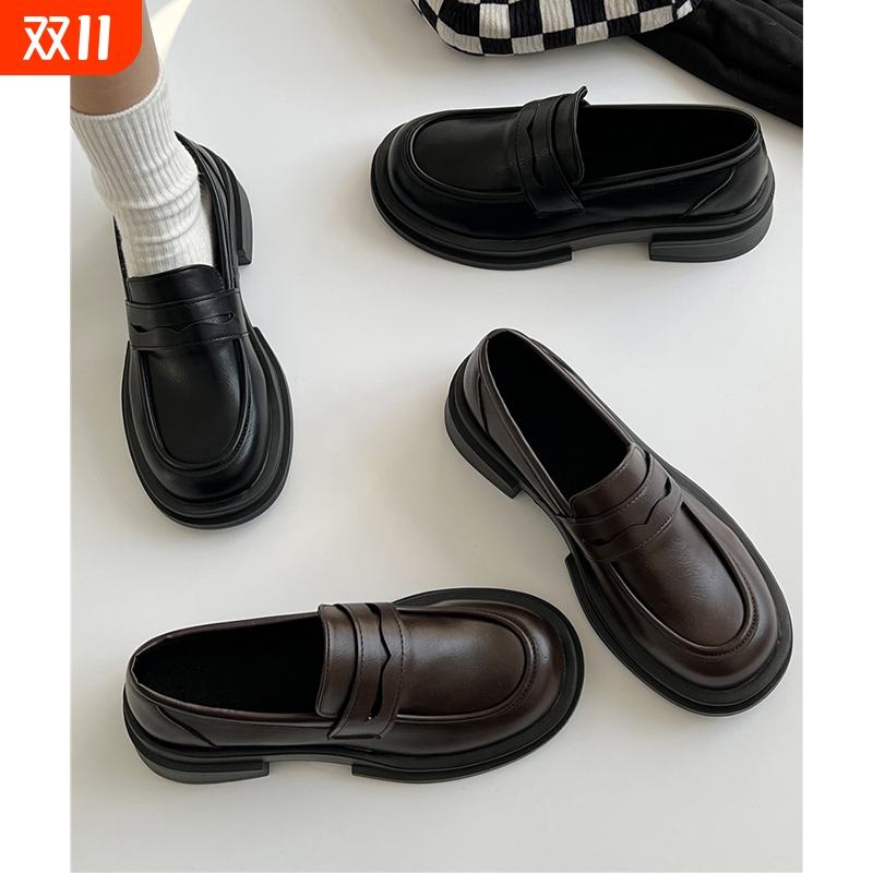 [不二鞋坊]厚底英伦风小皮鞋女2025春季新款真皮复古单鞋乐福鞋女