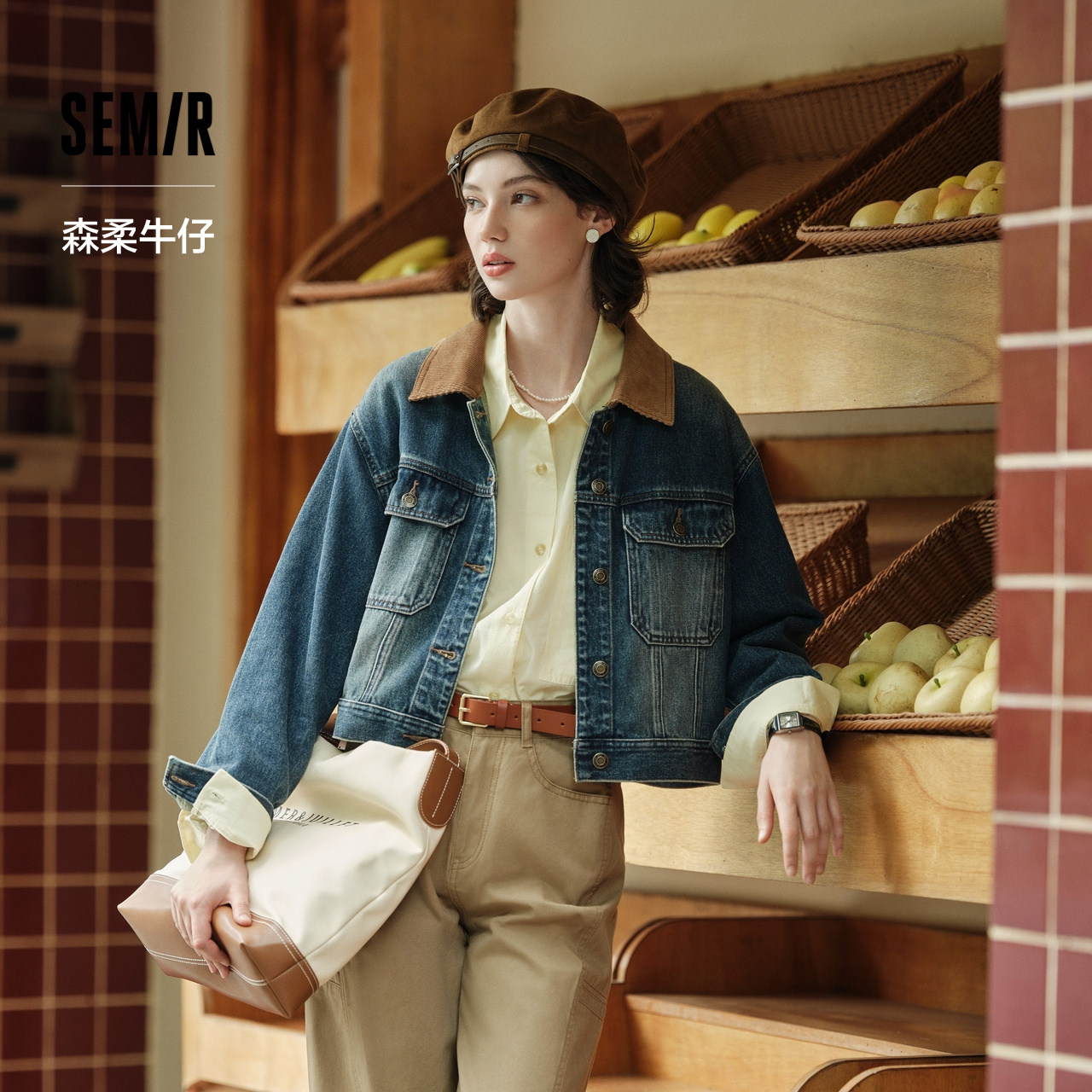 森柔牛仔|商场同款森马牛仔外套女短款秋2025新款复古夹克小个子