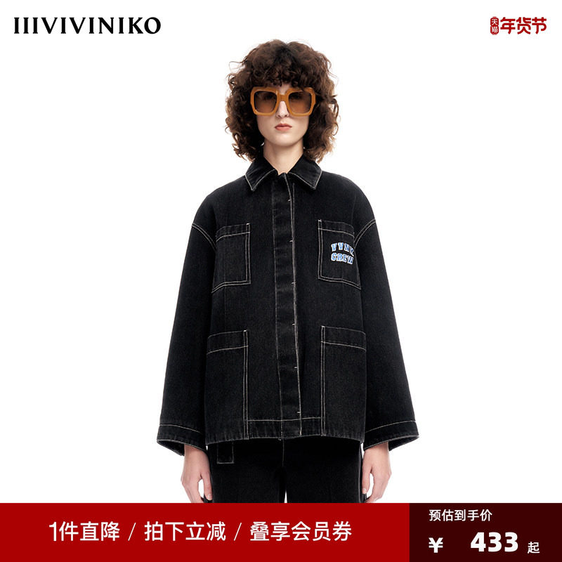 【早春新品】IIIVIVINIKO薇薏蔻复古个性字母绣廓形工装牛仔外套