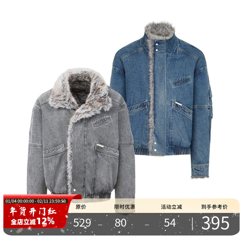 PMET「丹宁雕冕」座山雕毛领牛仔外套 重磅水洗加厚保暖工装外套