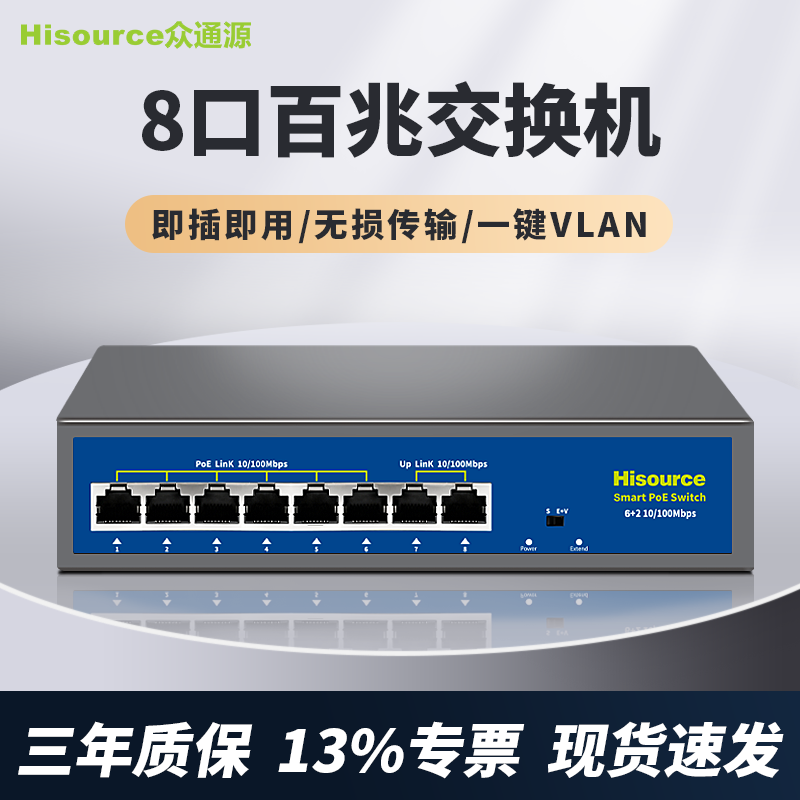 众通源交换机poe供电交换器百兆8口46网络转换器分线器光纤千兆企业级工业监控专用路由器同时上网线宽带家用