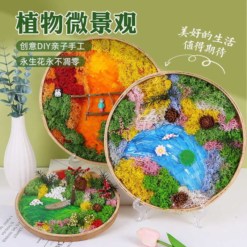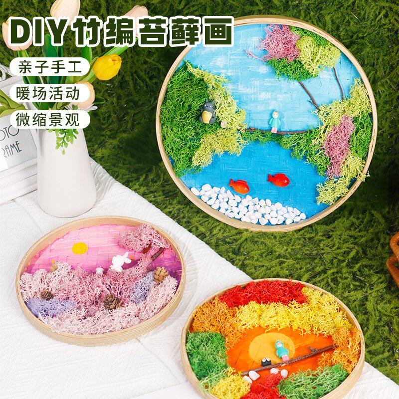 永生苔藓画材料包儿童手工DIY竹框竹编筐植物画绿植相框端午节