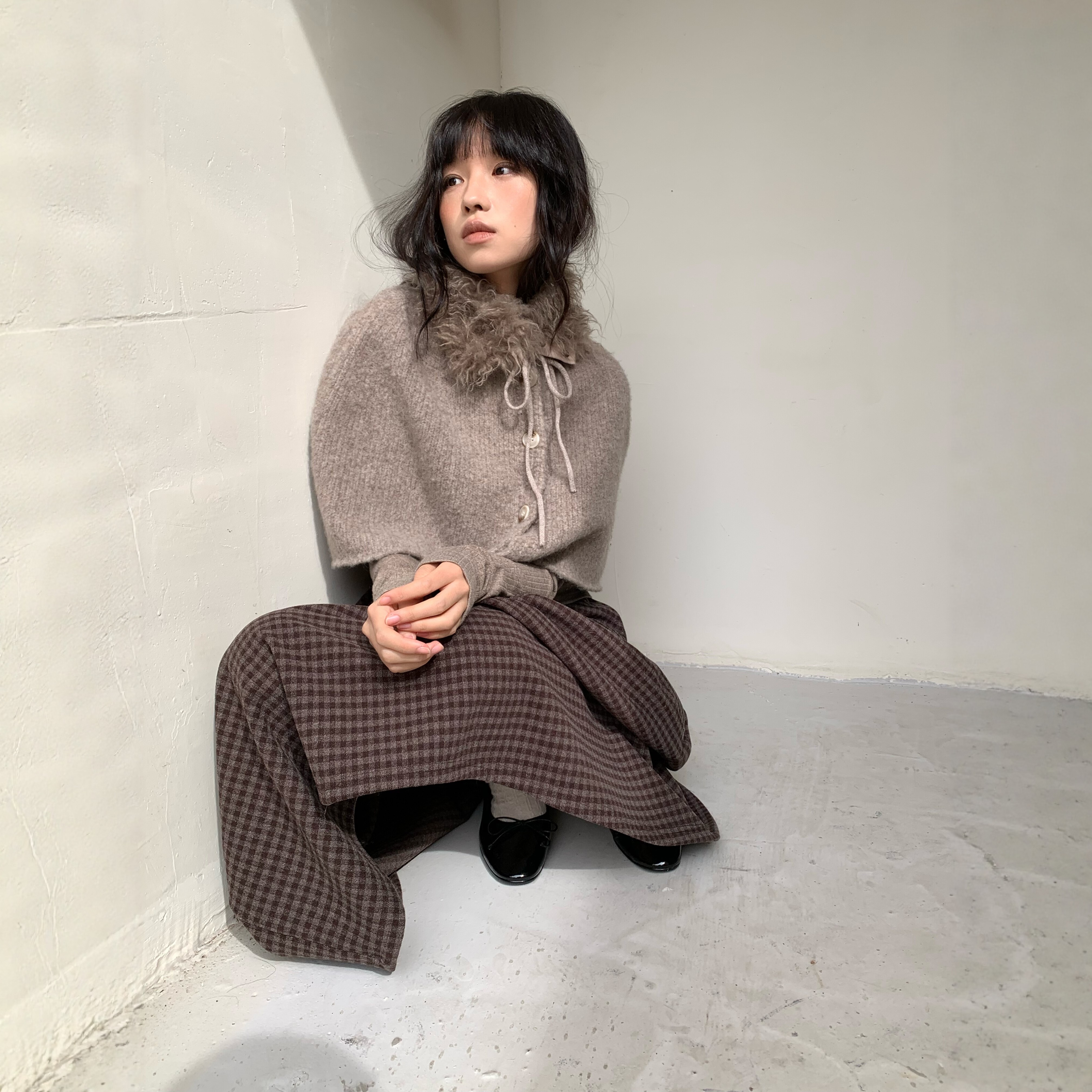 dorydory 浅咖色羊毛毛领斗篷毛衣披肩短款小众设计感秋冬搭配