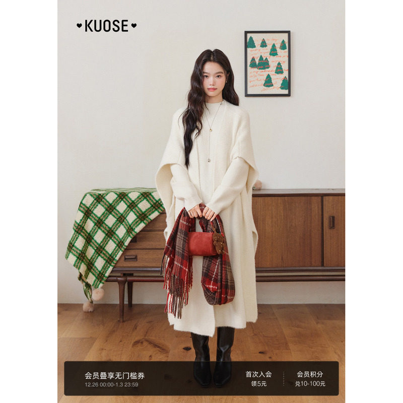 Mols披肩毛衣两件套女气质简约纯色高领叠穿斗篷打底衫套装60227