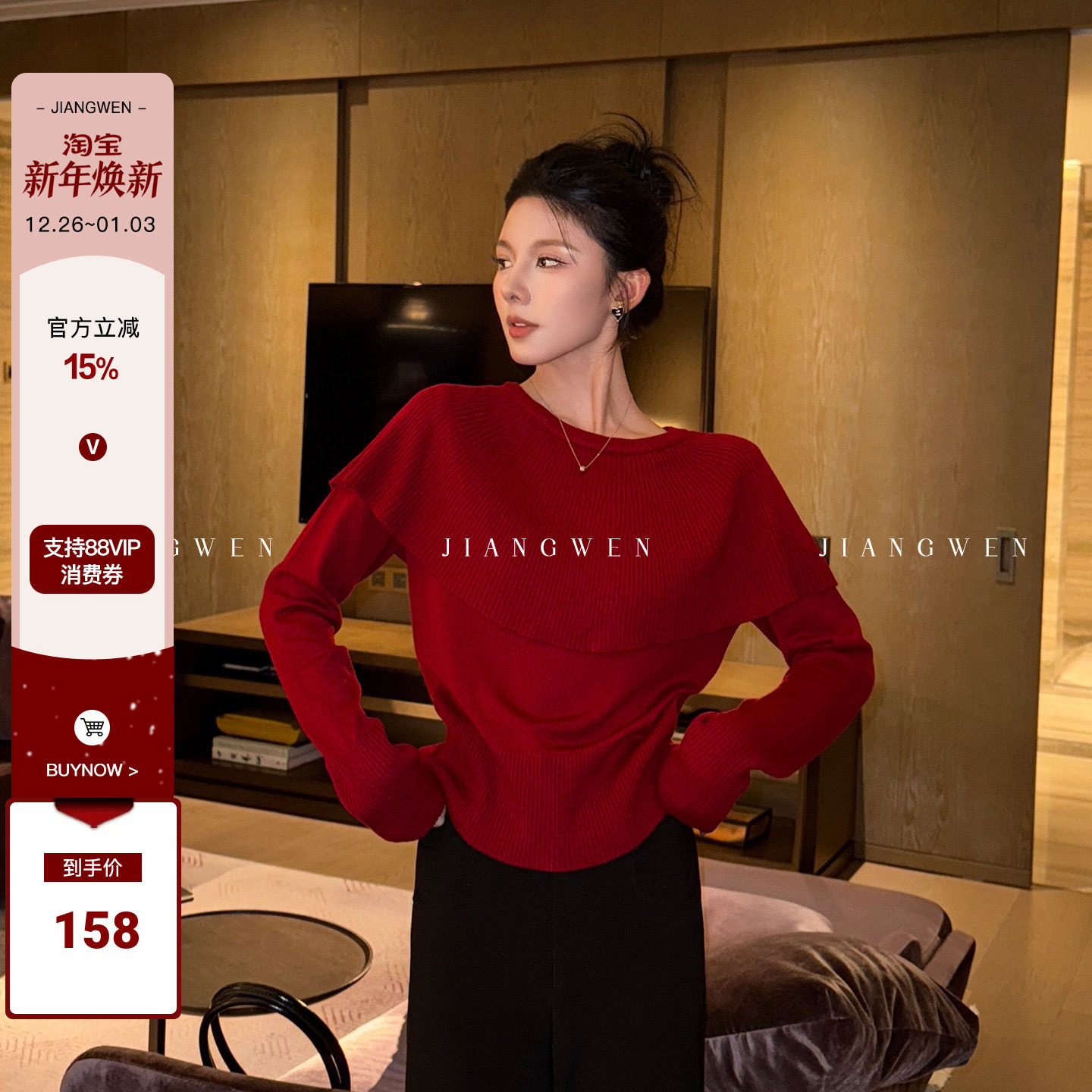 阔色气质披肩针织衫内搭斗篷上衣红25秋冬圣诞穿搭女打底衫毛衣新