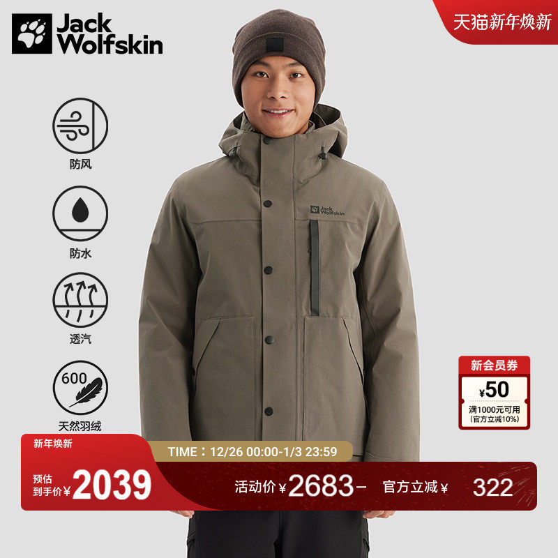 JackWolfskin狼爪25秋冬新款JOYFUL男防水鹅绒三合一冲锋衣A65469