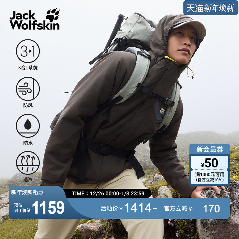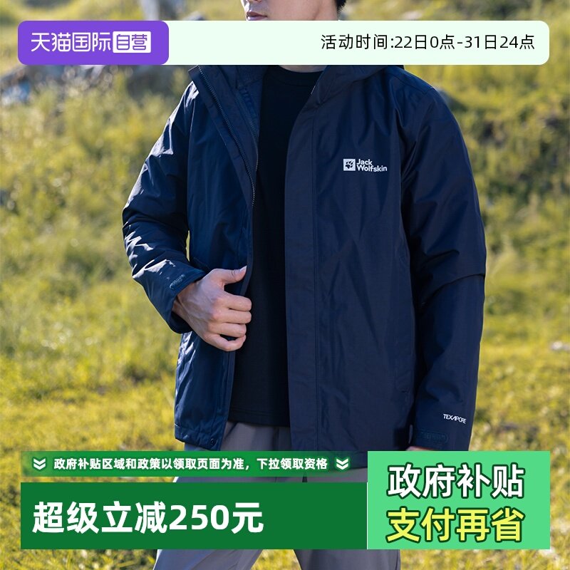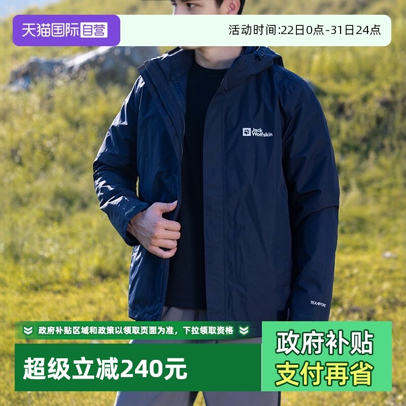 JackWolfskin狼爪冲锋衣三合一男秋冬户外防水鹅绒内胆夹克外套