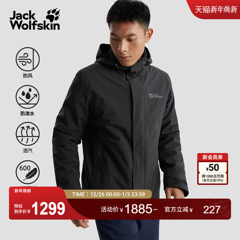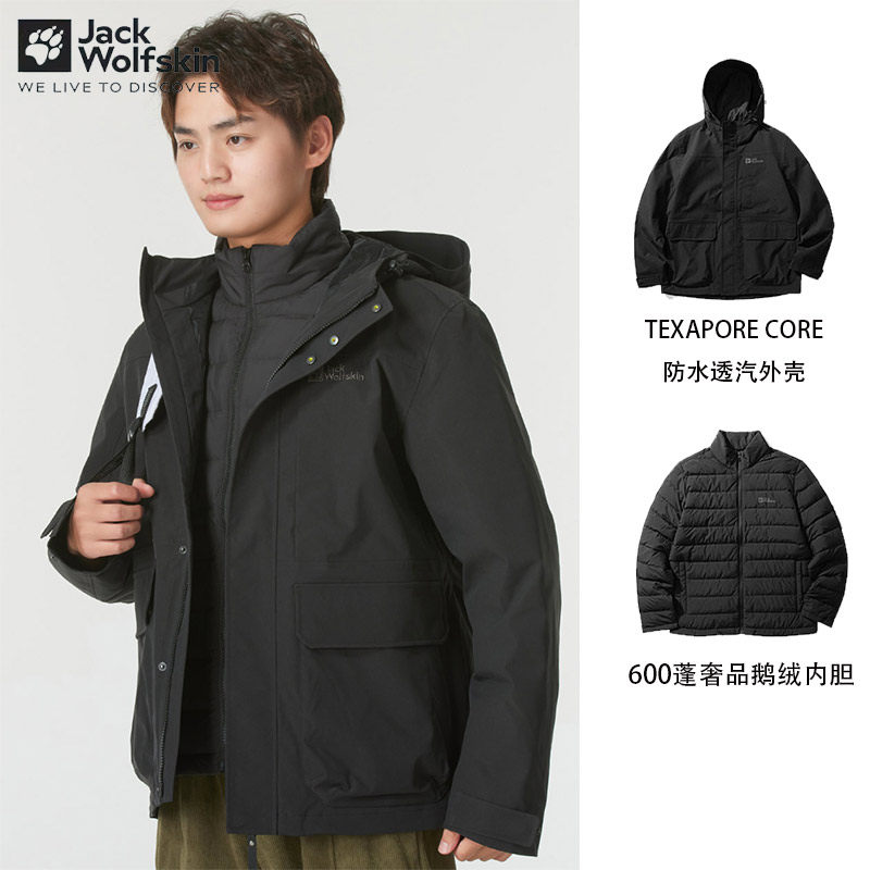 JackWolfskin狼爪户外男600蓬羽绒三合一冲锋衣鹅绒A62338
