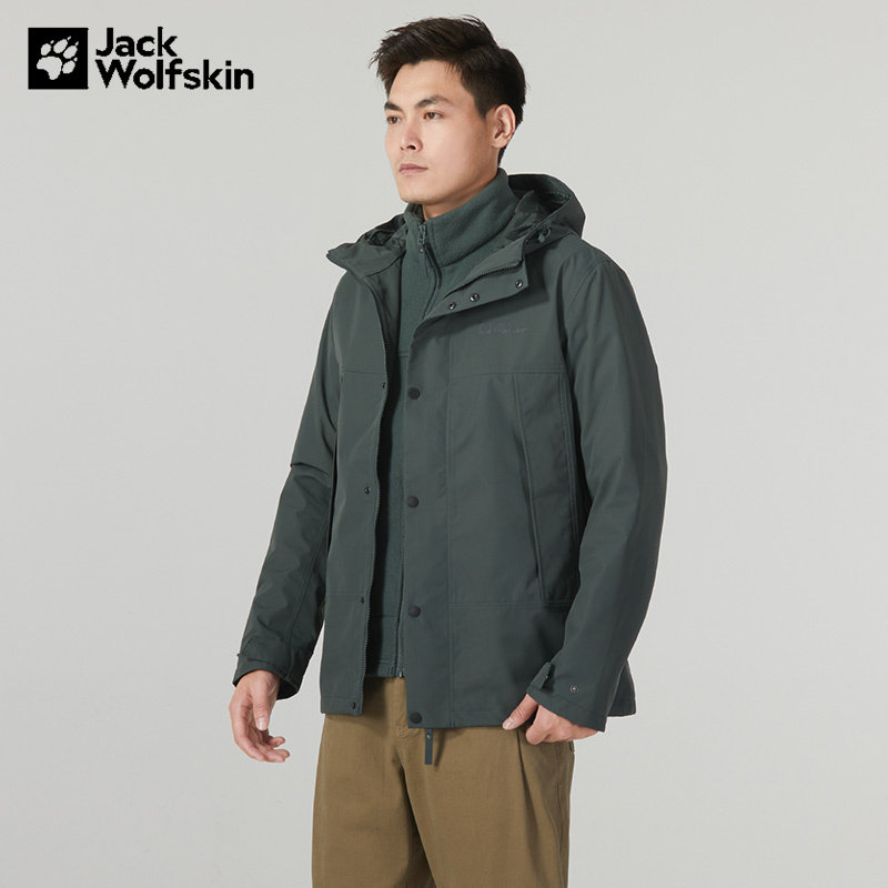 JackWolfskin狼爪ARLAND男士户外徒步防风抓绒三合一冲锋衣上衣