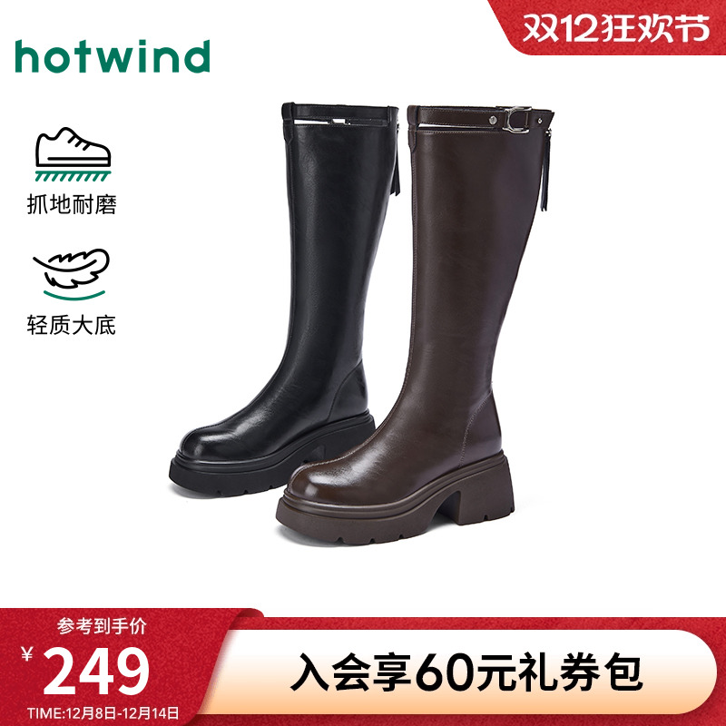 热风厚底长筒靴女2025年冬季新款机车风骑士靴百搭西部长靴子女鞋