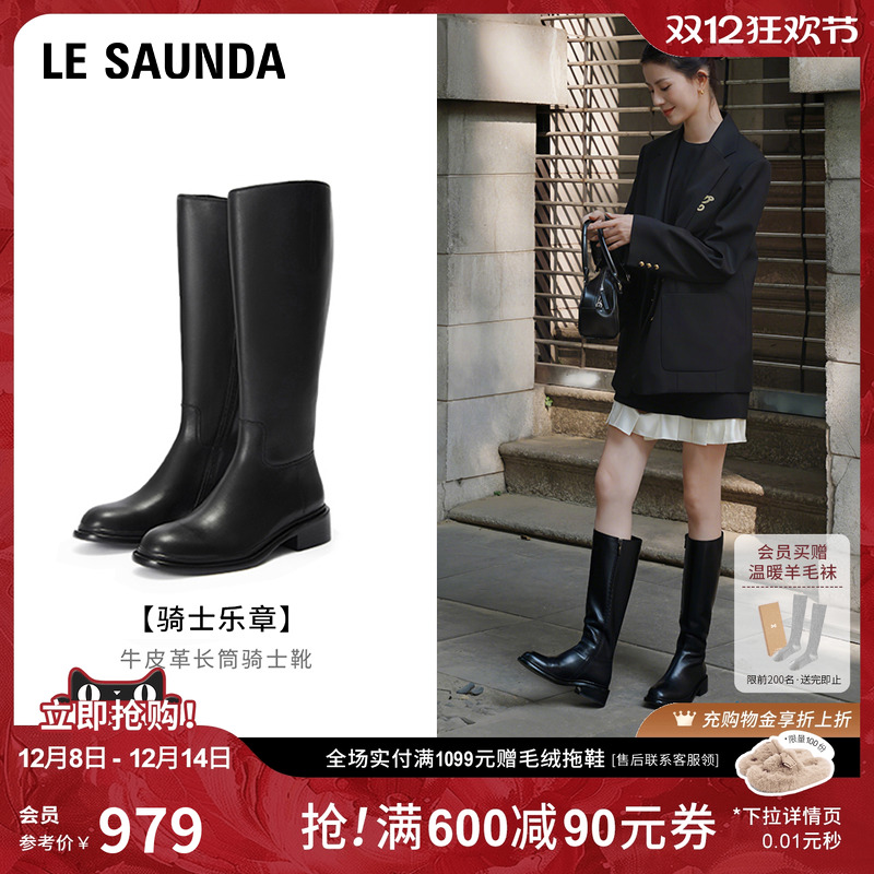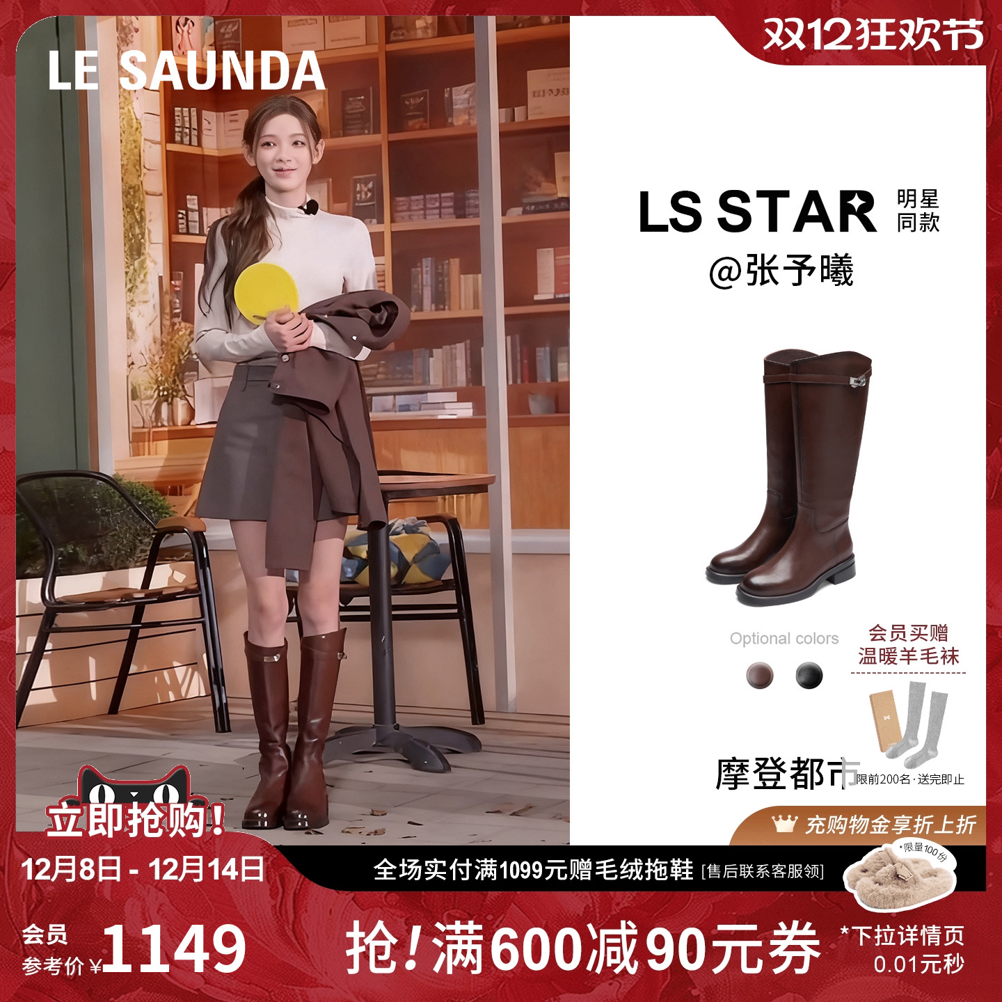 张予曦同款莱尔斯丹摩登都市25冬新款黑色真皮骑士长靴子女41603