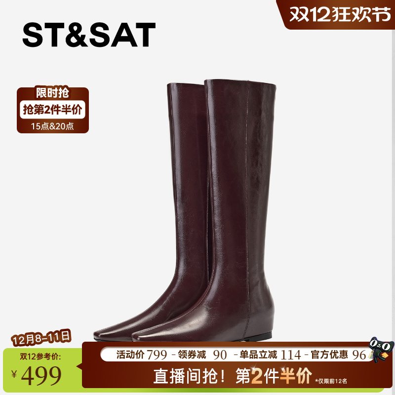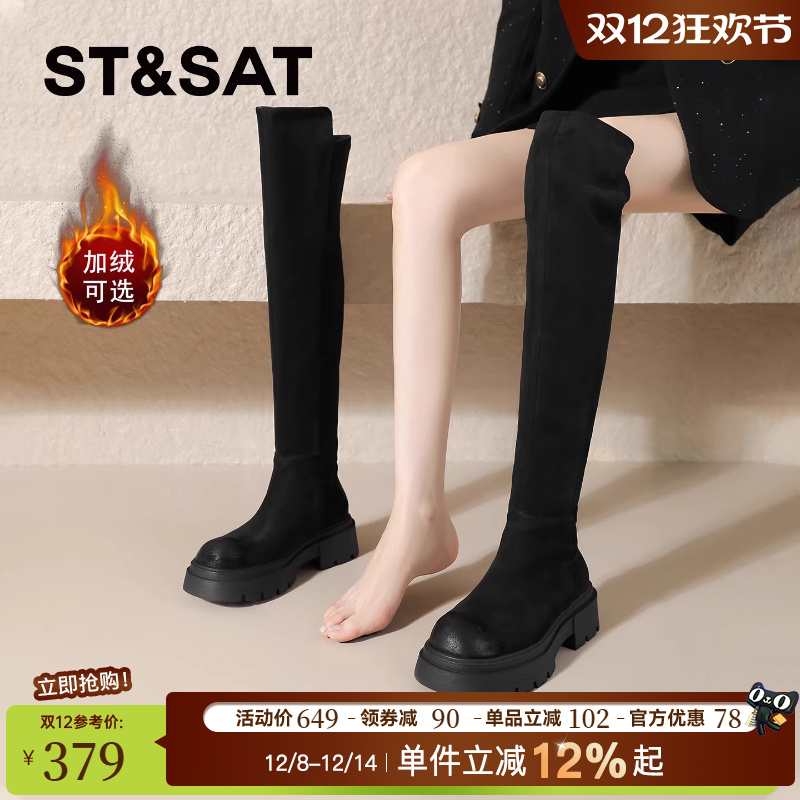 星期六过膝厚底长筒靴女2025新款冬季黑色加绒靴女高筒瘦瘦长靴子