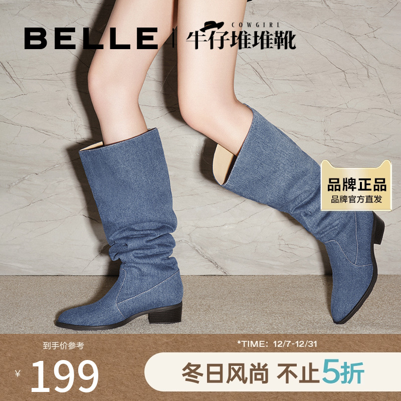 百丽堆堆靴过膝长靴子冬季新款女靴高长靴西部户外牛仔靴BCYA9DC3