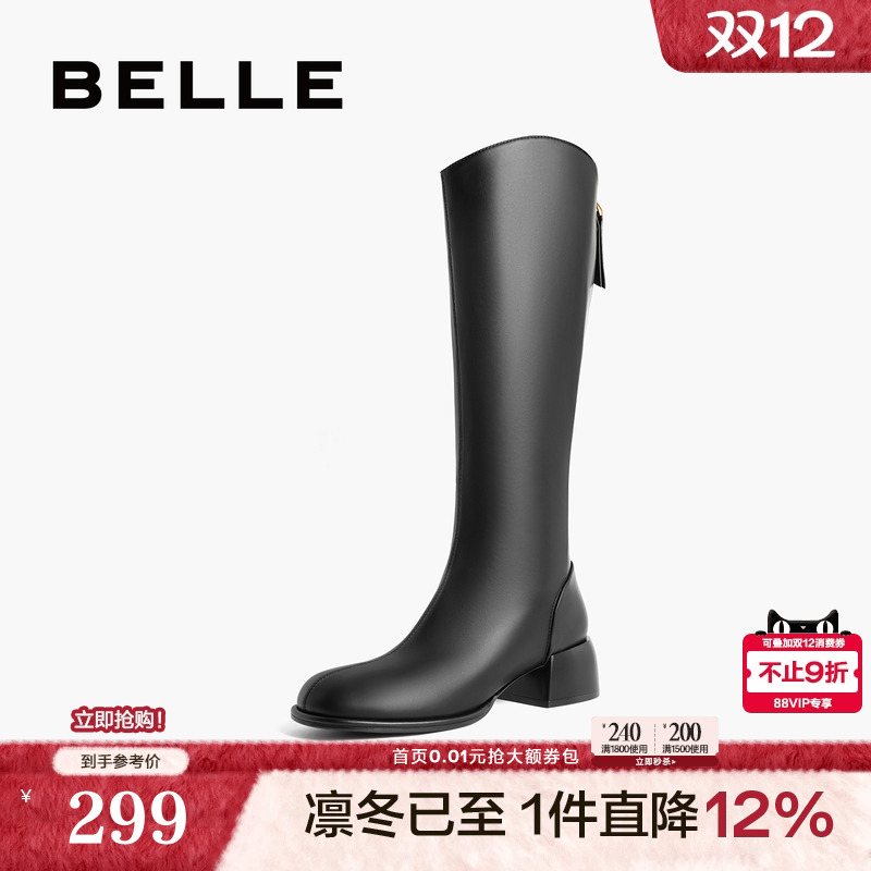 百丽粗跟弹力靴女冬季新款鞋子高长靴子显瘦长筒靴骑士靴A2G1DDG3