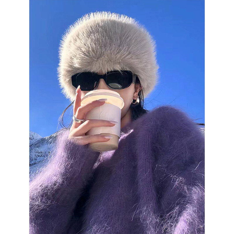 韩国东大门~仿貂毛帽子女冬季高级感显脸小渔夫帽盆帽皮毛一体潮