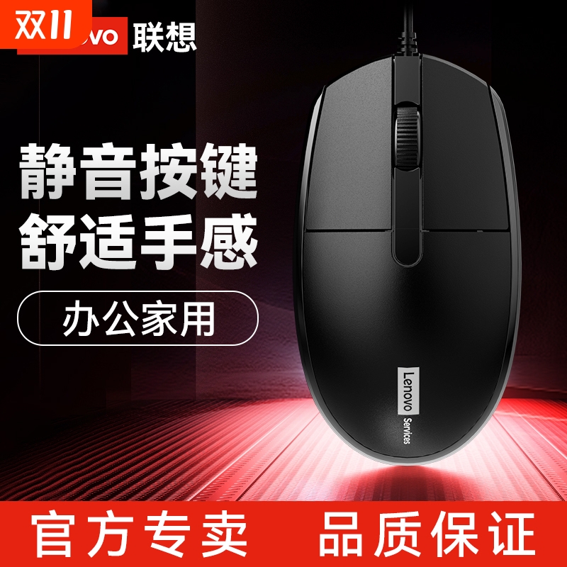 联想鼠标有线静音无声台式笔电脑记本家用滑鼠USB办公游戏女通用