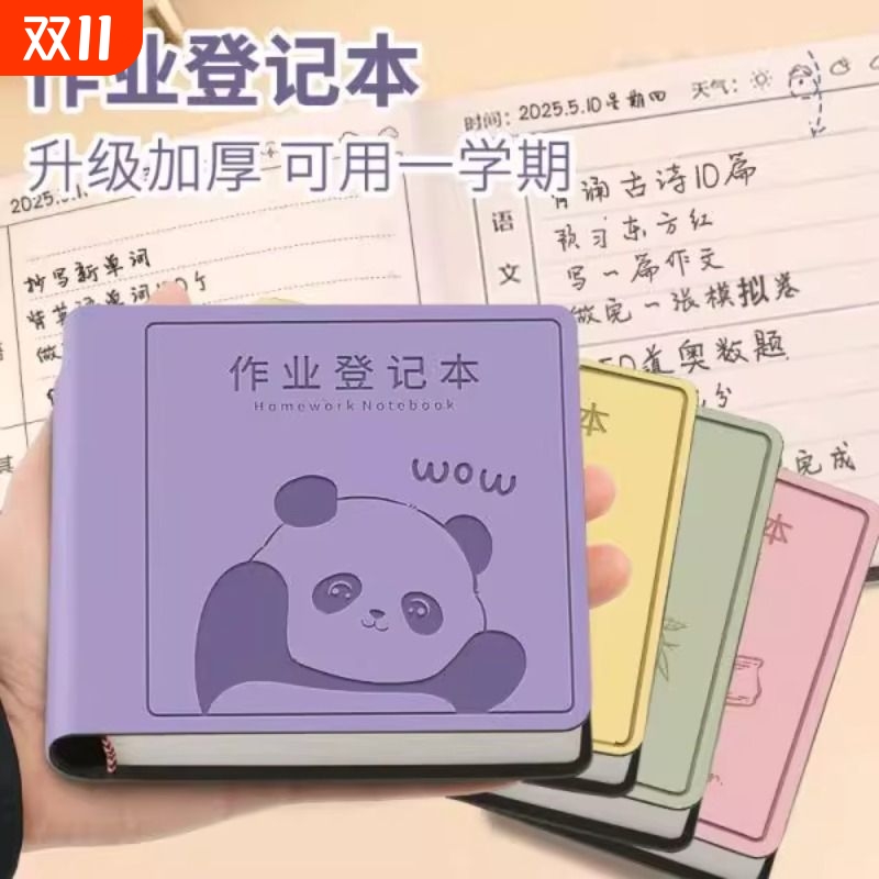 熊猫作业登记本同学自带笔插位高颜值三年级一二年级抄记本小学生专用记录本小本子加厚随身便携迷你笔记本