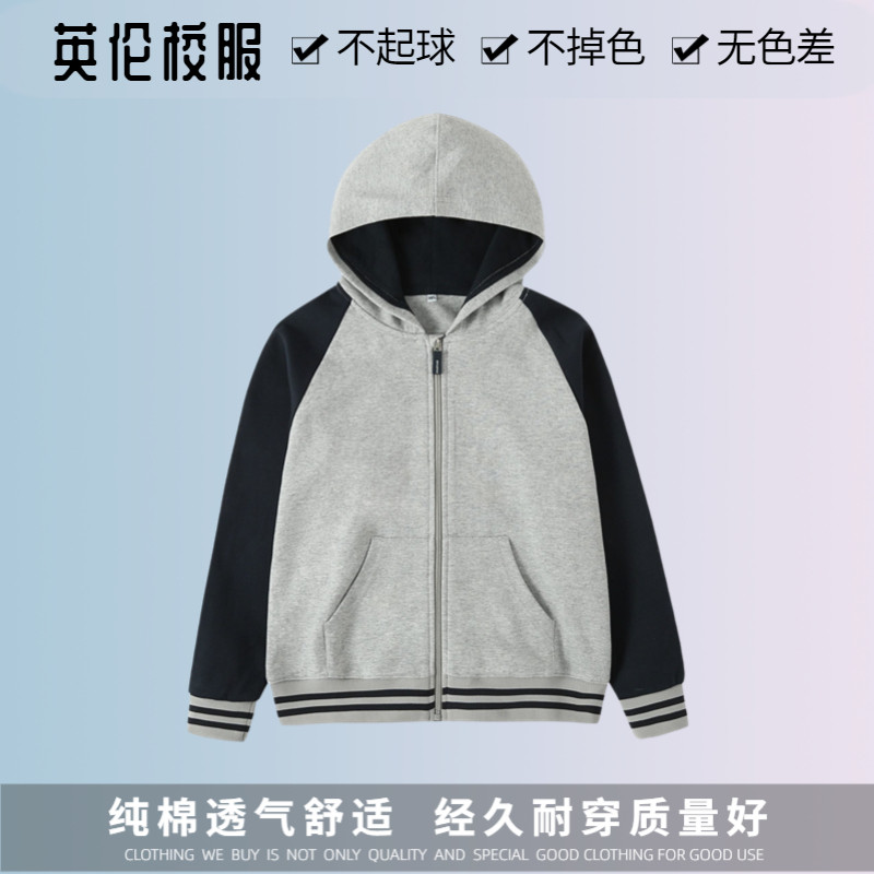 英伦风男女儿童春秋运动服学院藏青拼浅灰棒球装中小学生校服套装