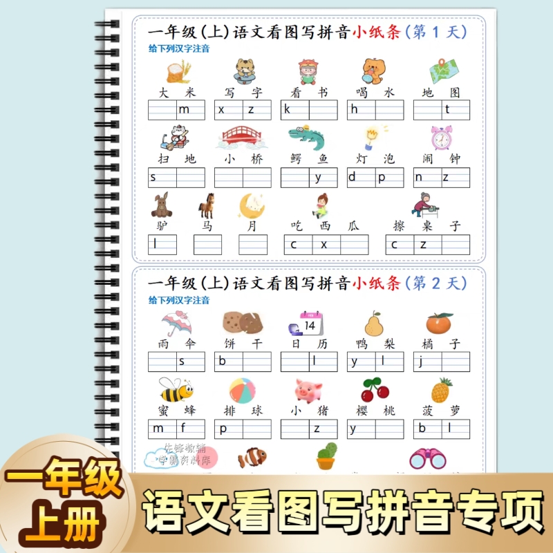 人教版小学一年级看图写拼音上册语文小纸条图文写拼音专项练习汉语拼音专项练习