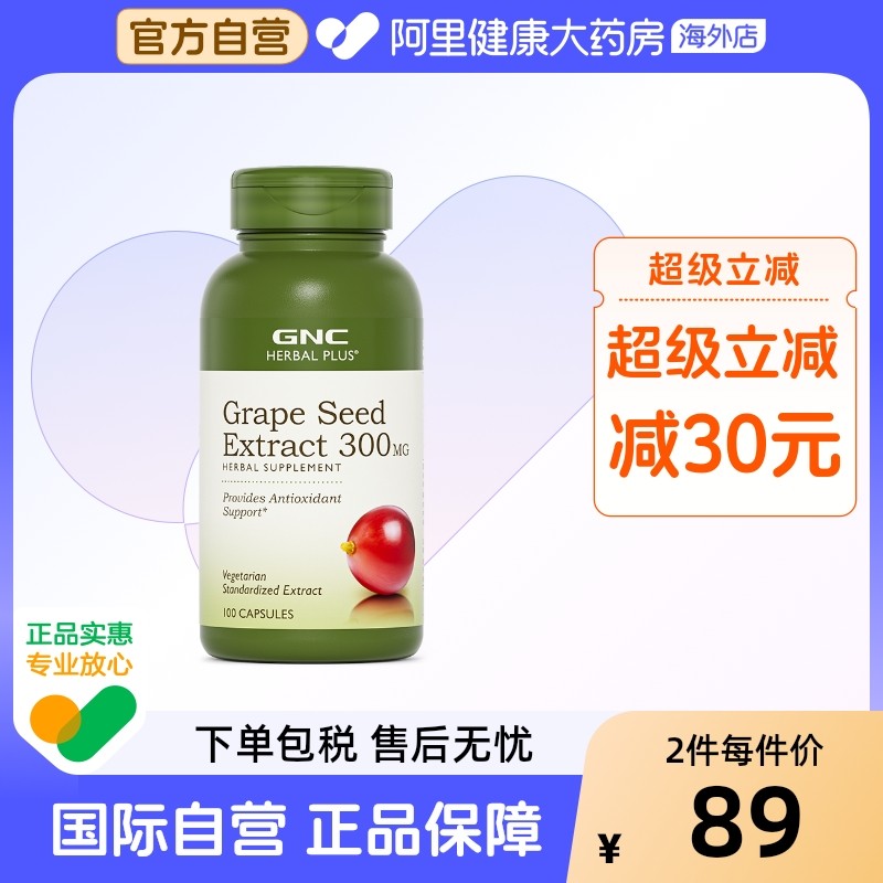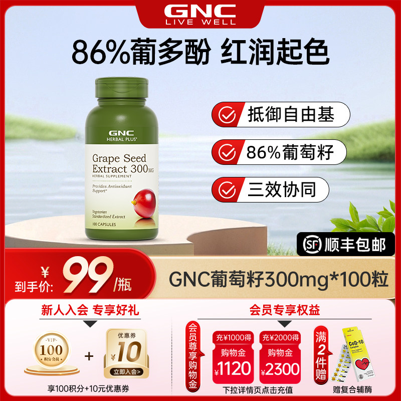 GNC葡萄籽精华300mg100粒高含量浓缩精华多酚原花青素搭白藜芦醇