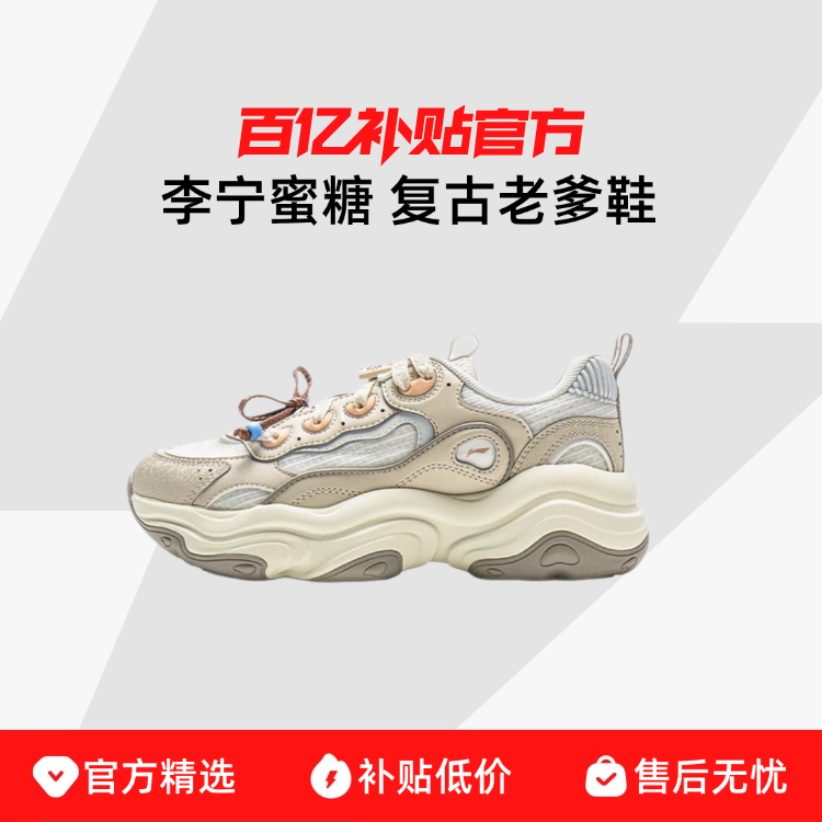 李宁蜜糖丨2025新款休闲鞋女鞋夏季增高复古老爹鞋厚底低帮运动鞋