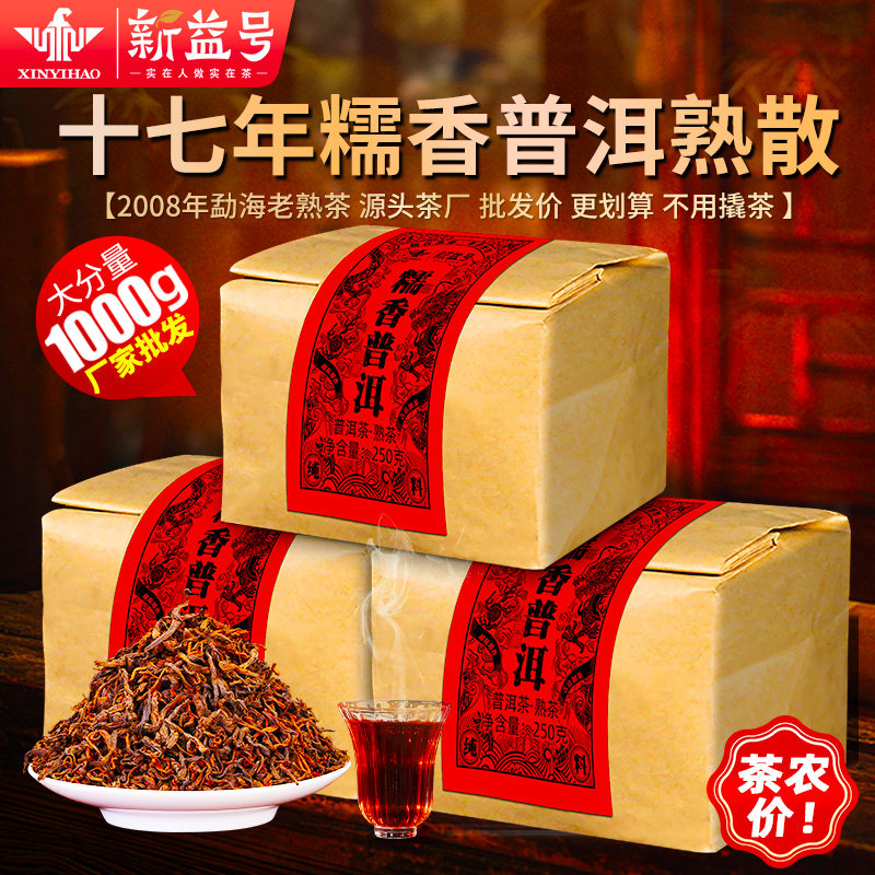 云南糯米香普洱茶熟茶十年以上新益号散茶云南古树茶口粮茶1000克