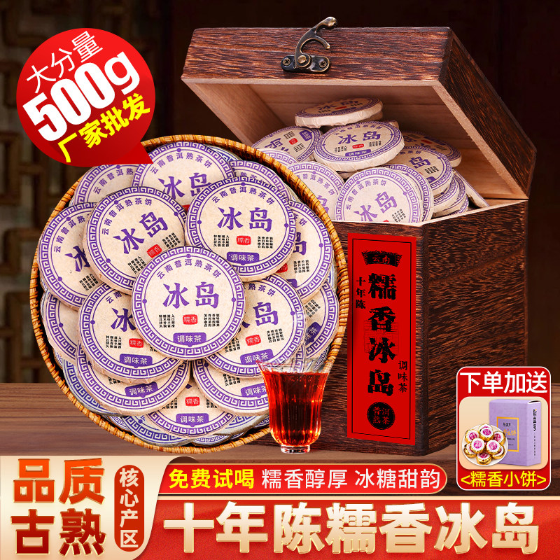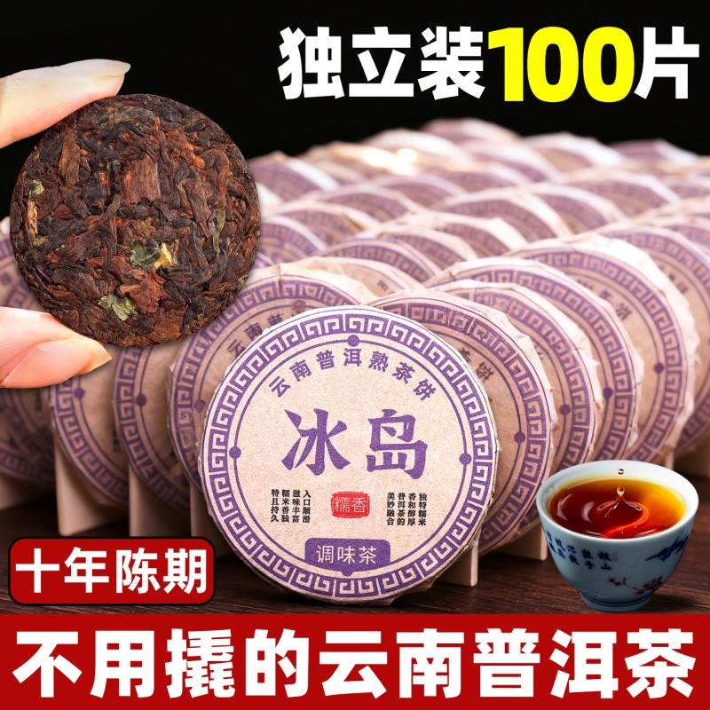 冰岛糯米香普洱茶熟茶十年以上小茶饼沱茶熟普洱自己喝茶叶小片茶