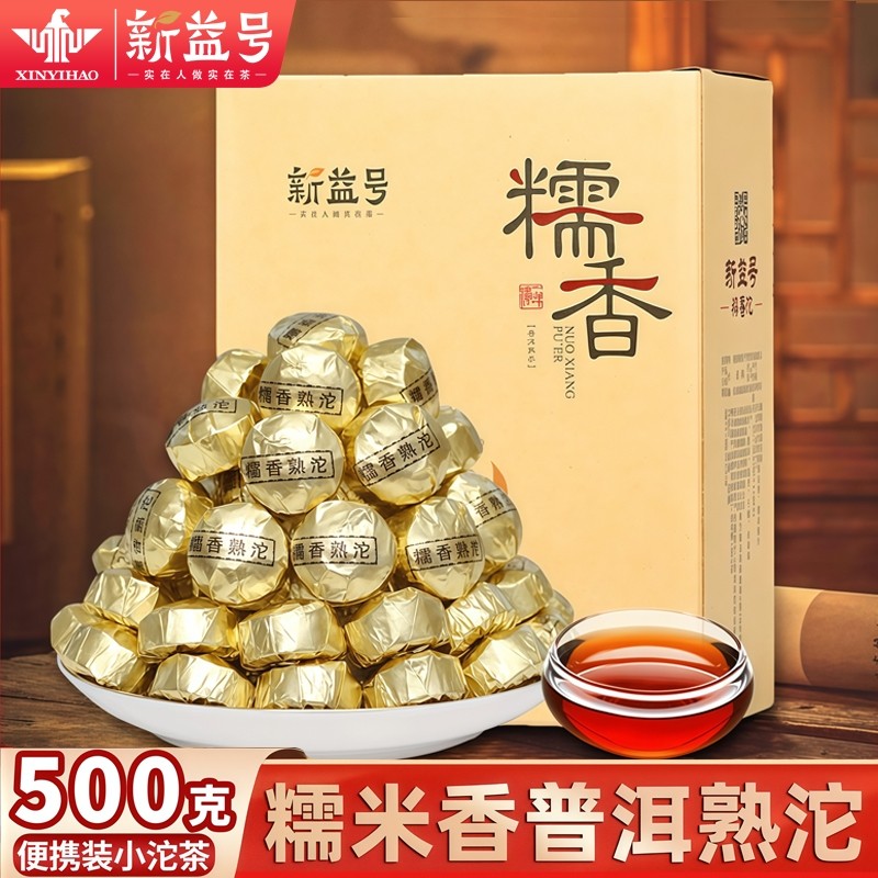 糯米香普洱茶熟茶新益号云南茶叶普洱茶小沱茶糯香普洱熟茶包茶饼