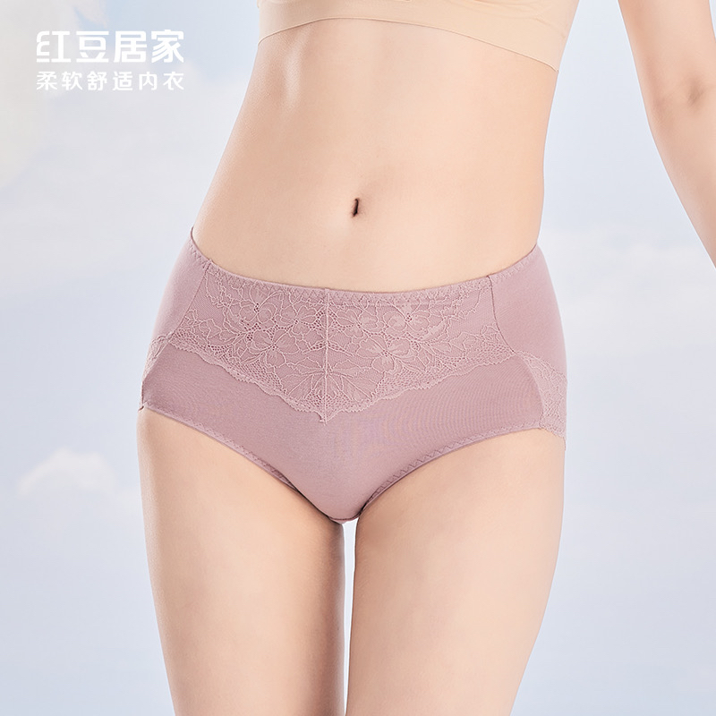 红豆内裤女生纯棉10A抗菌裆加长中腰莫代尔棉高腰收腹蕾丝三角裤