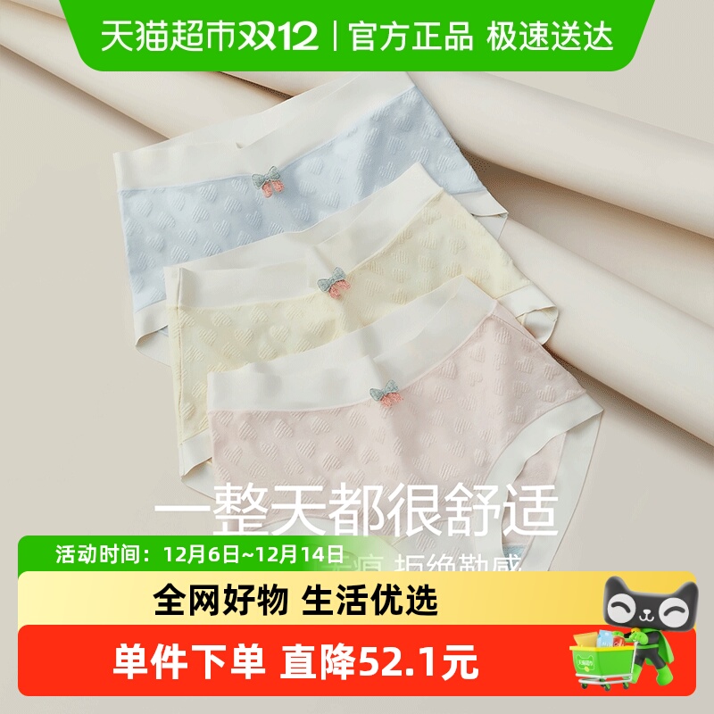红豆内裤女纯棉抗菌裆60支长绒棉中腰提花少女无痕裤头可爱三角裤