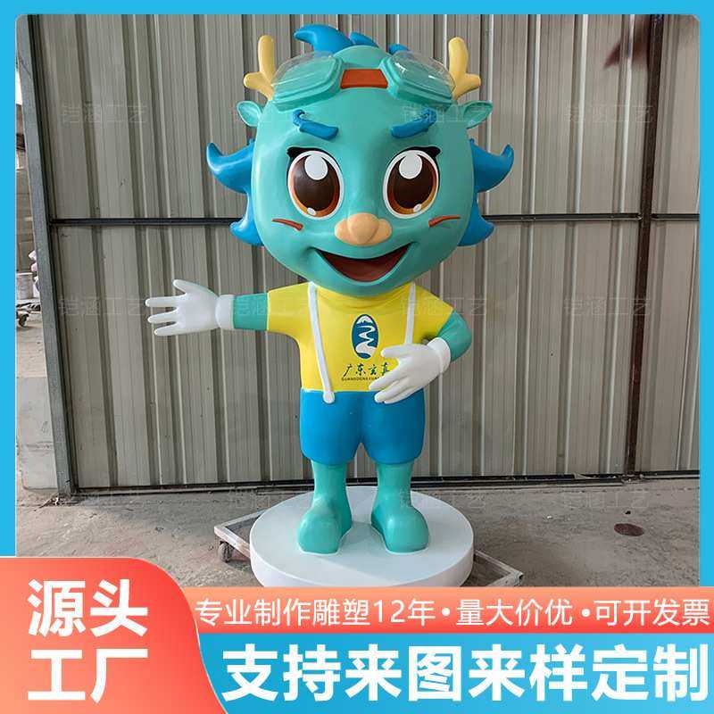 玻璃钢卡通龙吉祥物雕塑2024新年ip形象户外大型公仔玩偶落地摆件