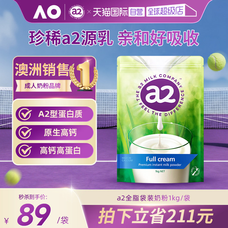 【自营】新西兰a2成人奶粉全脂高蛋白全家营养学生中老年1kg/袋
