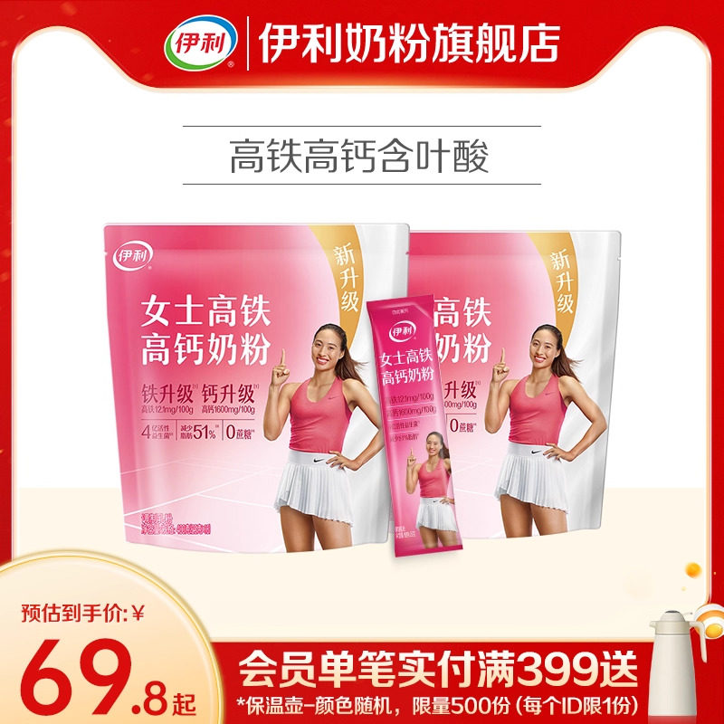 伊利奶粉旗舰店女士奶粉成年高铁高钙成人营养奶粉400g*2官方正品