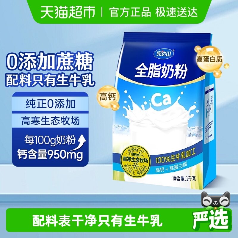 完达山全脂0添加成人牛奶粉中老年学生营养高钙高蛋白早餐1kg/袋