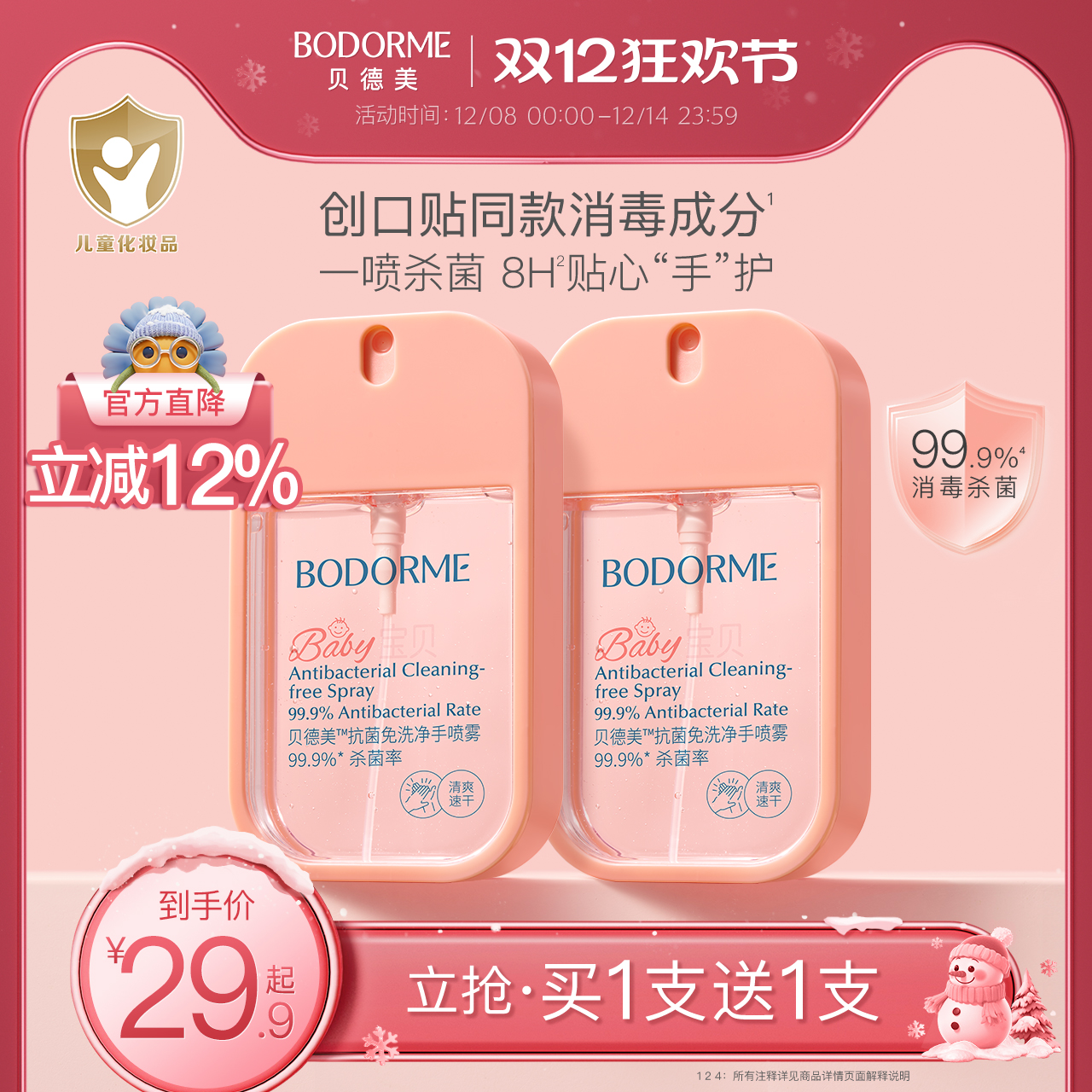 贝德美儿童免洗手液户外出行便携式抗菌洗手喷雾婴幼儿专用洗手液