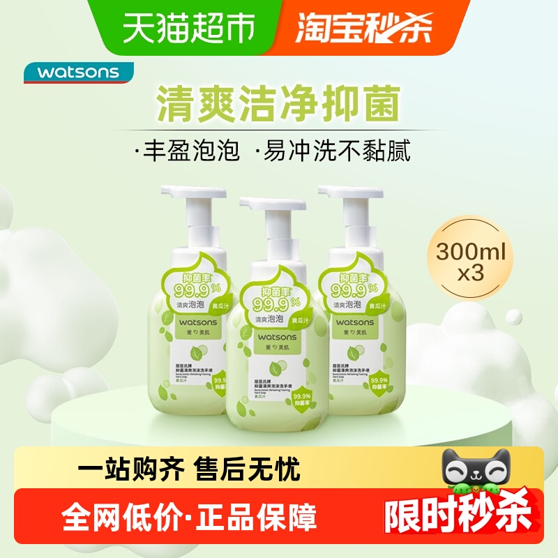 屈臣氏抑菌清爽泡沫洗手液呵护手部肌肤家用300ml X 3瓶