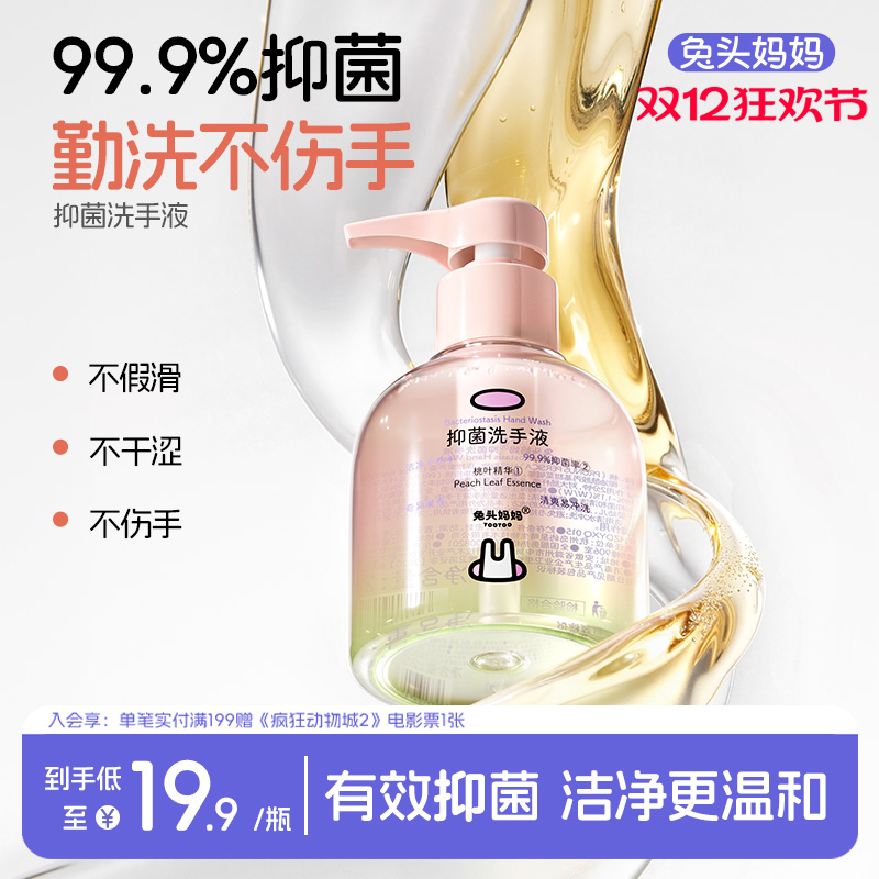 小浣熊儿童抑菌洗手液300ml婴儿宝宝家庭用非免洗柠檬芦荟按压瓶
