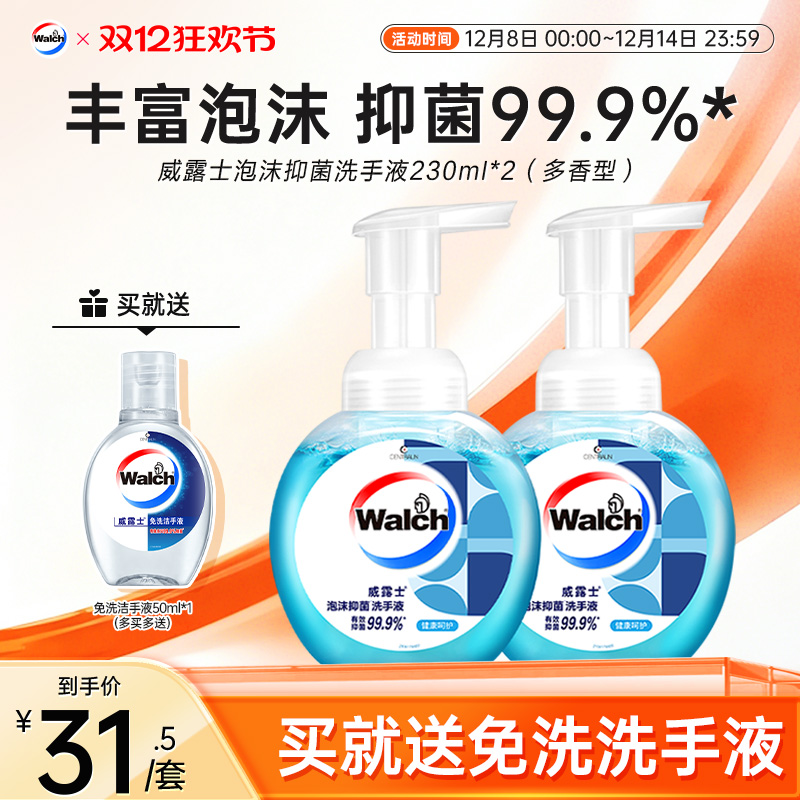 威露士泡沫洗手液230ml*2家用抑菌99.9%儿童成人通用清洁易冲洗
