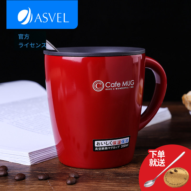 日本avel保温杯办公室咖啡杯 马克杯带盖带勺 水杯 杯子女 隔热杯
